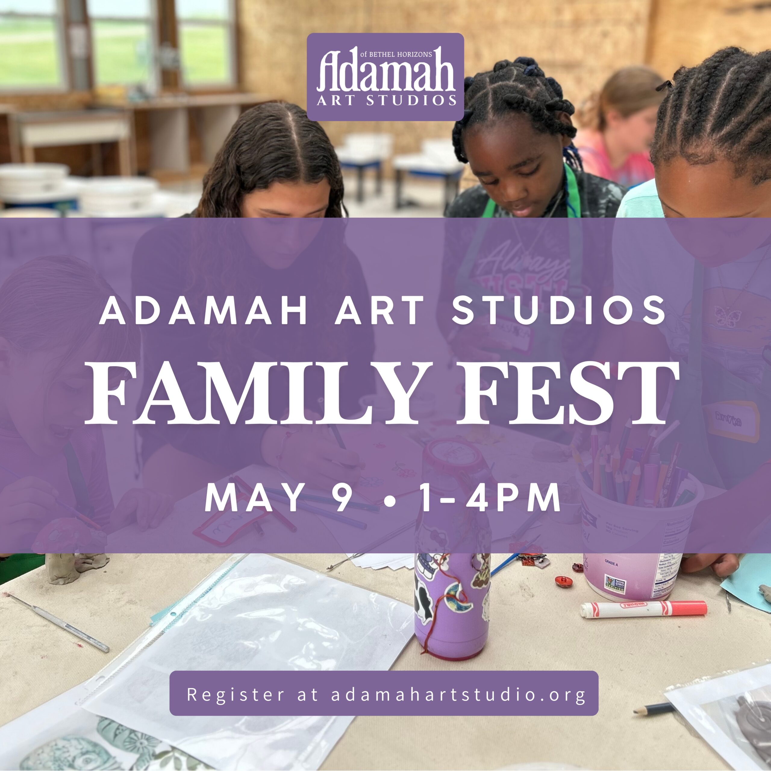 Celebrate the day before Mother’s Day with art, play, and time together at Family Fest at Adamah Art Studios! Join us for a free, family-friendly open house in our Summer Studio (home to our youth summer art classes) from 1–4 PM with drop-in hours so you can come and go as you please. Enjoy hands-on art activities, demos, games, and creative surprises for all ages—make a heartfelt Mother’s Day gift or simply spend meaningful time creating with Mom.